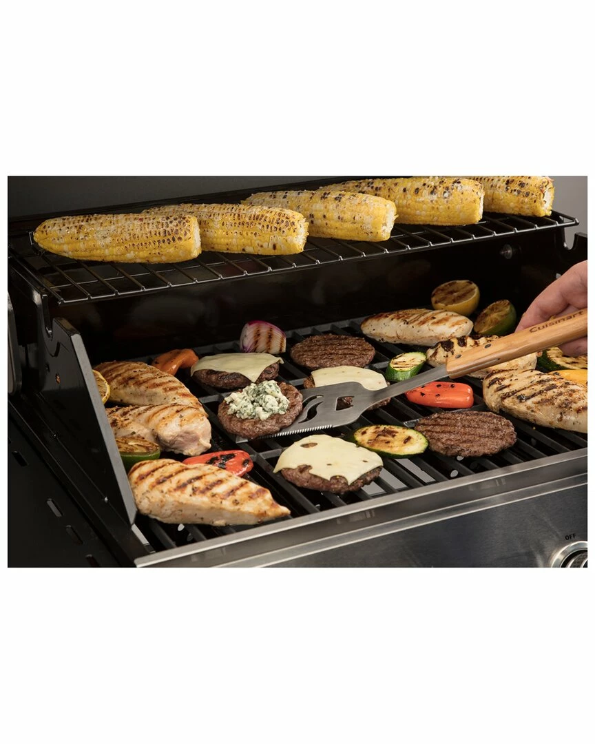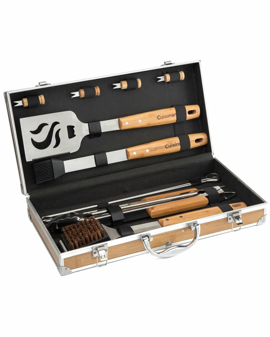 - Design details: stainless steel construction; 13 Piece Grill Tools stored in Aluminum and Bamboo Carry Case