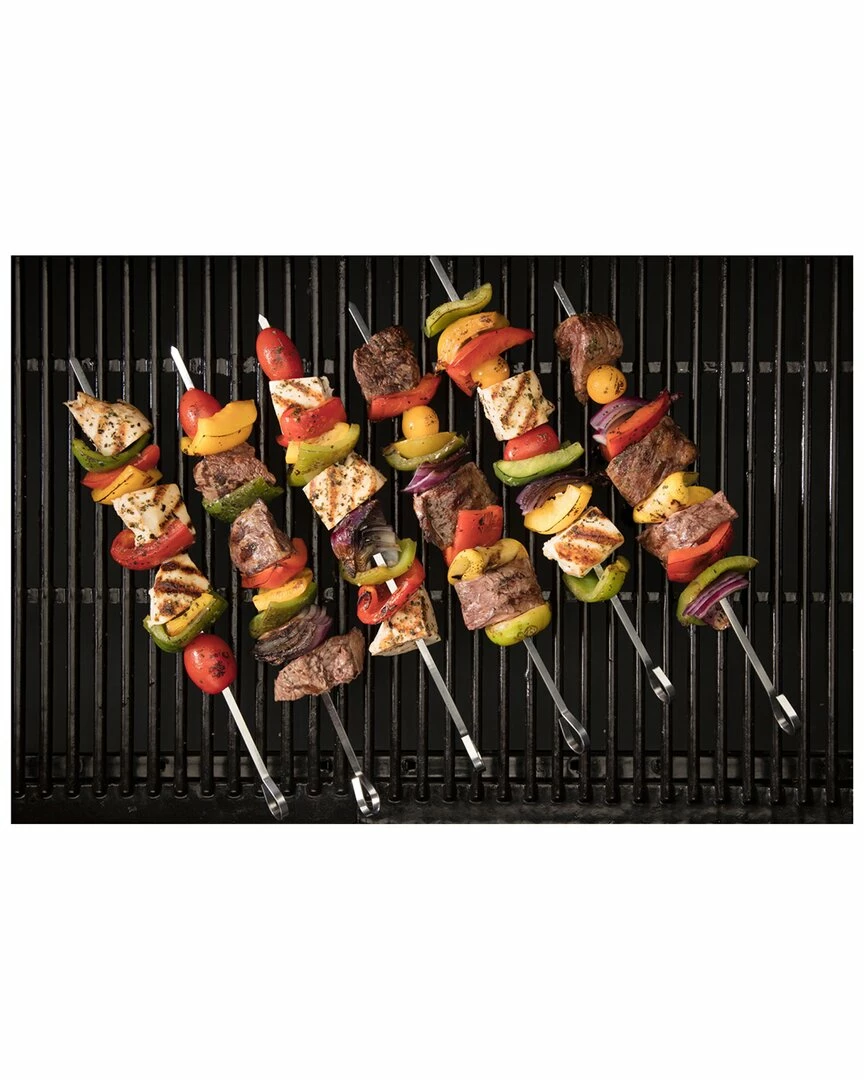 - Silicone heat resistant and water resistant glove. 6 stainless steel skewers, 10 stainless steel burger flags and 8 stainless steel corn holders