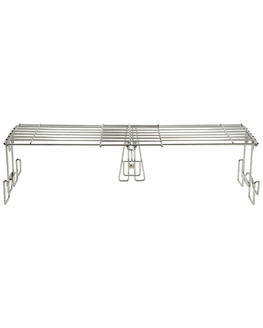 - Design details: Have you joined the outdoor griddle cooking craze?! Griddles bring restaurant quality food to your backyard with the seasoned cast iron flattop cooking surface. The Cuisinart Adjustable Griddle Warming Rack is the perfect accessory for most sizes of outdoor griddle, it expands from 17-inches to 36-inches! The stainless steel base sections are designed to sit on the sides of a griddle, giving you enough room to continue cooking under it. Use the warming rack to keep cooked food warm and burger buns toasty! The Cuisinart Adjustable Griddle Warming rack is a great (and needed) accessory to add to your outdoor griddle cooking system; Keeps food warm without over cooking; the height of the warming rack allows for full use of the griddle surface; Simply place the base units on the sides of the griddle and place the warming rack in the given slots; It is easy to install by simply clipping over the sides of your griddle, which also makes it easy to remove when needed and folds together for compact storage; Fits 17 inch to 36 inch outdoor griddles. For smaller griddles, just use the sides and one top rack, storing the rest; This Warming Rack is low enough to the griddle to keep food warm and high enough to allow food to still be cooked on the griddle underneath it.