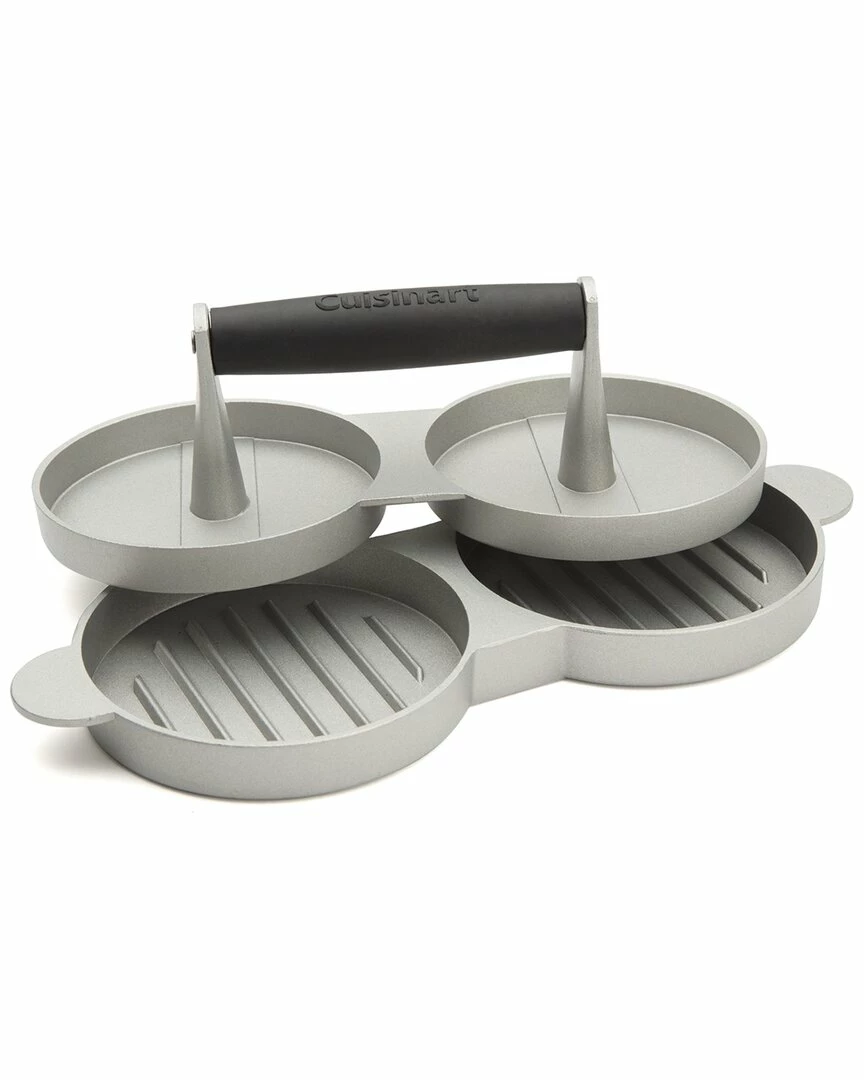 - Design details: Make 2 perfect burger patties at once! The Cuisinart Cast Aluminum Double Burger Press offers you an easy and quick solution to forming perfect homemade burger patties. Simply add your ground meat to each side and press down; its as easy as that! Its durable cast aluminum material is non-stick and easy to clean. Save time with the Cast Aluminum Double Burger Press; making 2 patties at once will save you more time in the kitchen to enjoy the time with your guests by the grill!; Make 2 perfectly shape burger patties every time! Enjoy the ease of making your own burger patties and impress your guests with the consistency of the shape; Nothing beats the taste of homemade burgers! The Double Burger Press makes it quick and easy to make multiple patties for you to fire up on the grill or store for later; The non-stick surfaces helps to keep your patties intact and makes for an easy clean up!; Also a great tool to make veggie burgers, salmon burgers and other alternatives! Best thing about making your own burgers is you can get very creative!