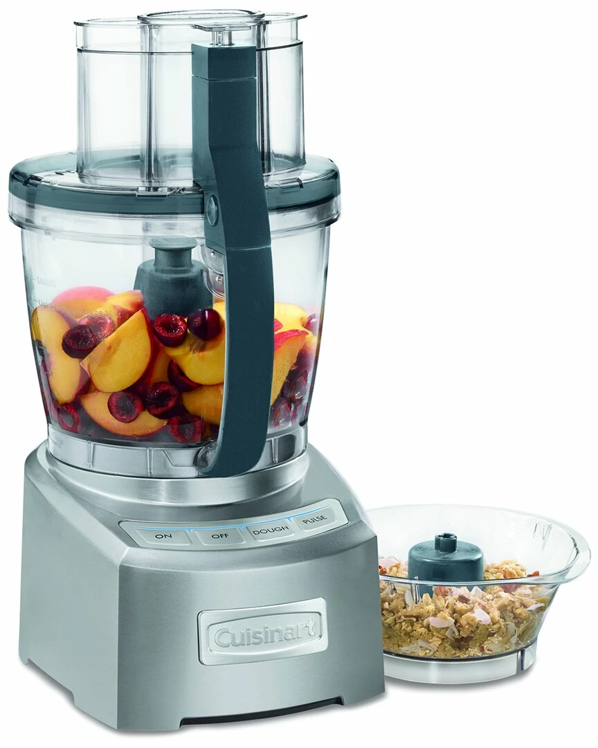 - The Cuisinart Elite Collection® 14 Cup Food Processor boasts a 1300 watt peak power motor to power through your favorite recipes with ease. With innovative design solutions including a 4½ cup work bowl nested inside the 14 cup bowl, adjustable slicing disc, and a reversible shredding disc, Cuisinart gives you multiple food processors in one! The SealTight™ Advantage System keeps your kitchen counters clean from spills whether mixing, processing, or pouring, and the removable parts are all dishwasher safe for your convenience.Features & Benefits14 cup Large Bowl and 4½ cup Small Bowl with Pour Spouts & Measurement Markings1300 watt Peak Power motorExclusive Patent-Pending SealTight™ Advantage System – Seals Bowls and Locks BladesEasy On/Off Locking System with Push-Button ReleaseStainless Steel Adjustable Slicing Disc (up to 10mm)Stainless Steel Reversible Shredding Disc(fine/medium)Large and Small Stainless Steel Chopping/Mixing Blades with BladeLock SystemDough BladeCuisinart® Supreme® Wide-Mouth Feed Tube and Cover AssemblyElectronic Touchpad Controls – On/Off/ Dough/Pulse with Blue LED LightsRetractable cordAccessory Storage Case with LockSpatulaRecipe/Instruction BookAll Removable Parts Are Dishwasher Safe20-Year Motor Warranty, 3-Year Limited WarrantyBPA Free
