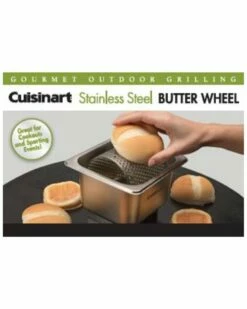 - Design details: Quickly Butter Multiple Slices of Bread, Buns or Rolls in Seconds! The Cuisinart Stainless Steel Butter Wheel will be your sidekick while cooking up burgers and hot dogs in anticipation to celebrate the teams win. Simply place unit on the griddle, allow the butter to melt, then start rolling rolls and buns over the Butter Wheel! Each will get perfectly coated with butter, speeding up the time it takes to normally toast each bun. Enjoy the ease and fun the Cuisinart Stainless Steel Butter Wheel will bring to your next griddling event!; Great for cookouts and sporting events; Butter slices of bread for sandwiches, rolls for burgers and buns for hot dogs; Place right on the griddle for an easy way to butter any kind of bread; Perforated-roller design is removable for easy cleaning