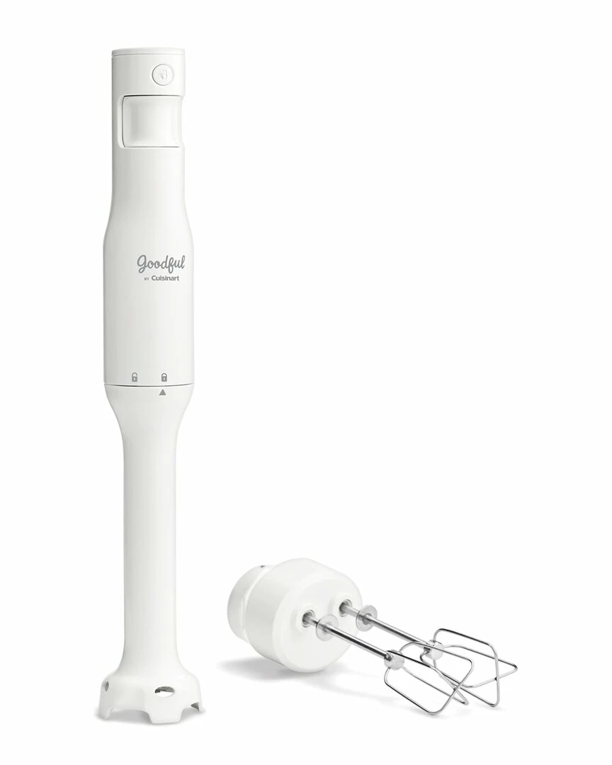 - Make quick work of blending tasks with the power and performance of the Goodful by Cuisinart variable speed stick blender. It comes with a measurement beaker and a double-beater attachment for hand mixing. Pressure Sensitive Trigger Speed control