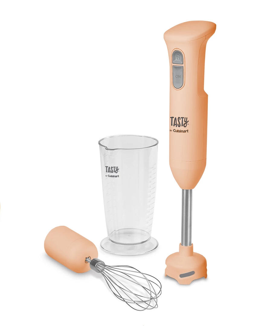 - Blend in a cup, puree in a pot, mix in a pitcher. Just add your ingredients and dip in! A hand-blender is the best thing that ever happened to blending. The stainless steel blending shaft gets down and dirty, then cleans up in a flash in the dishwasher. Crazy about creamy soups? Salivate over salad dressings? Passionate about your protein shakes? With 200 watts of power available with the touch of a button, and a Tasty™ recipe book with more ideas if you run out, this is a blender you’re going to spend a lot of quality time with! 200 Watts of PowerBlender and Chef’s WhiskErgonomic comfort grip handleStainless steel blending shaftOne-touch operation24-ounce mixing beakerSafely lock/unlockLimited 18-month warranty